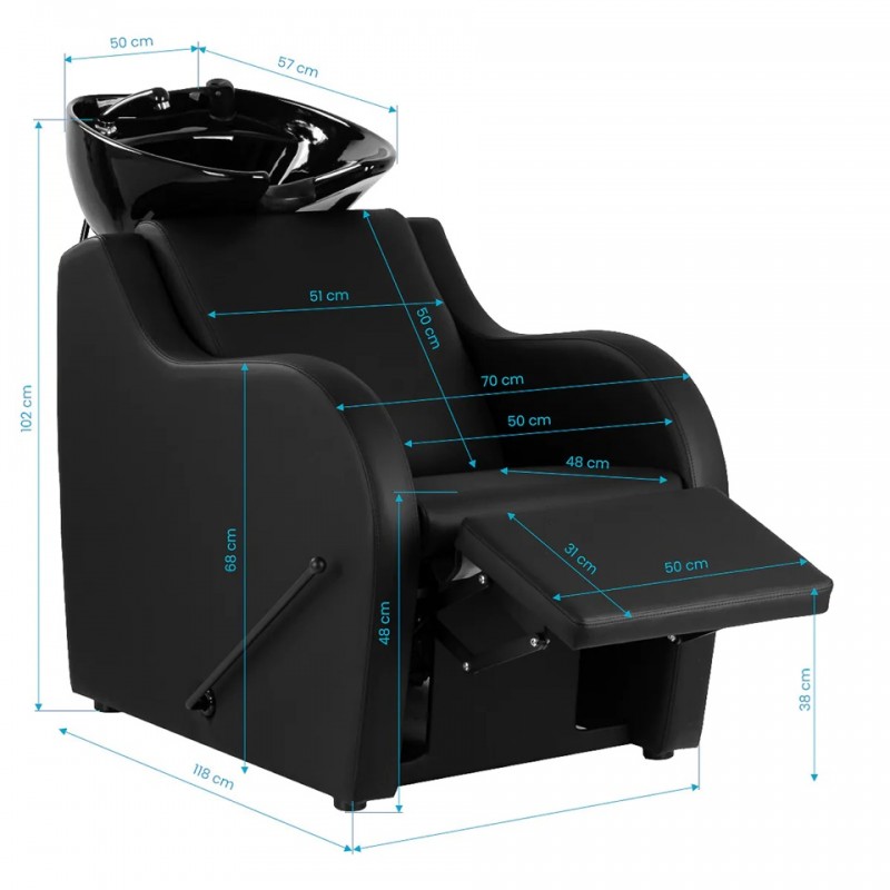 Deze wastafel met verstelbare voetensteun is een praktisch en stijlvol salonaccessoire. Het maakt comfortabele uitvoering van basisbehandelingen mogelijk , zoals wassen, kleuren en haarverzorging. Het geïntegreerde ontwerp zorgt voor gemak voor zowel stylist als klant, terwijl het moderne design het karakter van het interieur versterkt. De verstelbare voetensteun verhoogt het comfort tijdens elke behandeling verder.