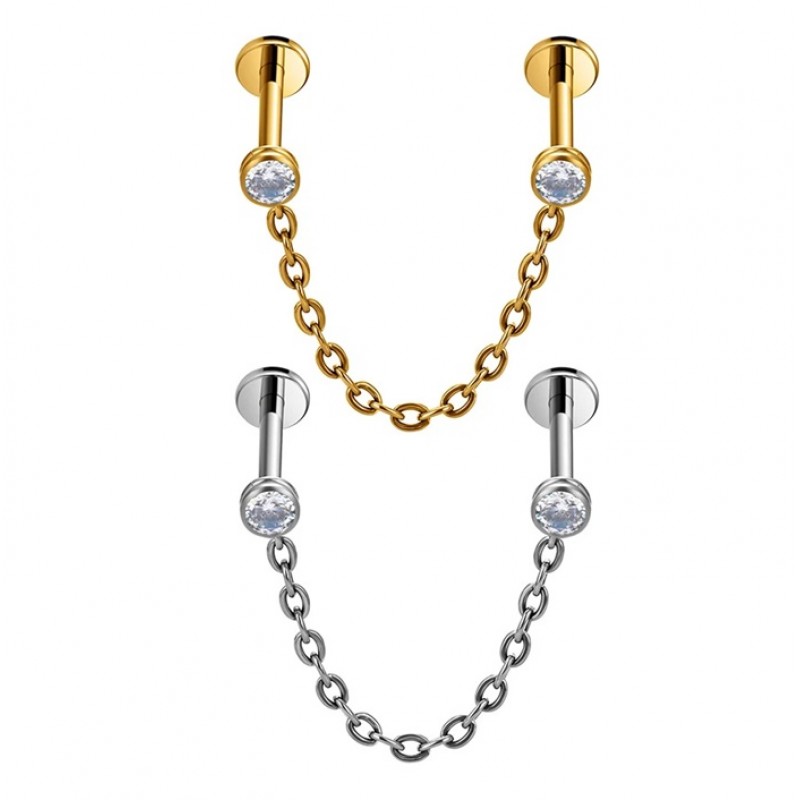 Dubbel 1.2 Titanium Push Pin Labret met ketting en steen