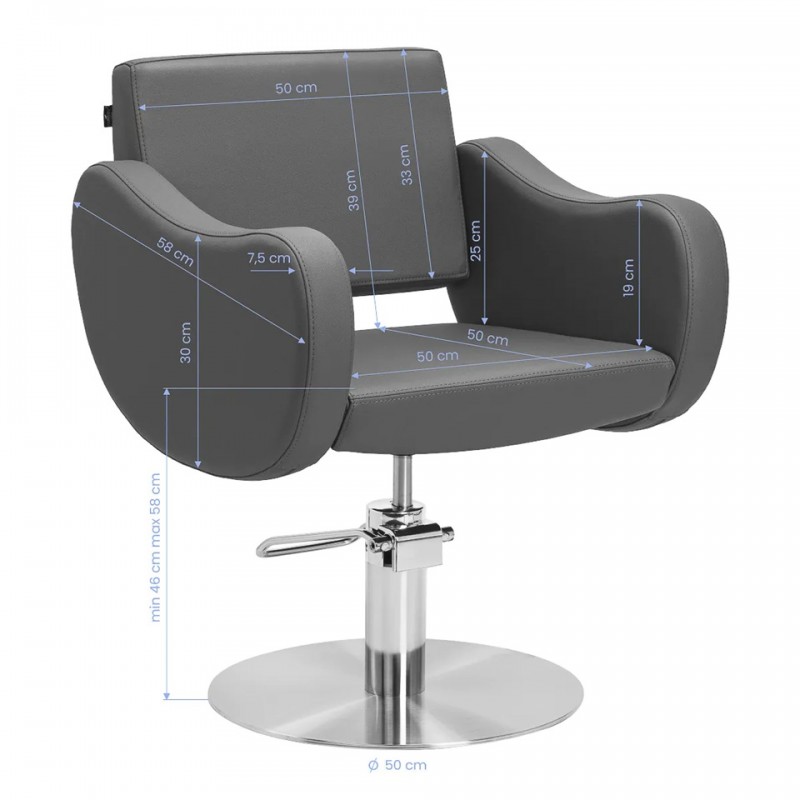 Deze kappersstoel combineert functionaliteit met tijdloze esthetiek. Een duurzame hydraulische lift zorgt voor een soepele hoogteverstelling , waardoor de positie eenvoudig aan de behoeften van de kapper kan worden aangepast. De ergonomische zitting, comfortabele rugleuning en prachtig gevormde armleuningen garanderen comfort, zelfs tijdens langere behandelingen. Het moderne, minimalistische design zorgt ervoor dat de stoel harmonieus past bij zowel klassieke als moderne saloninrichtingen.