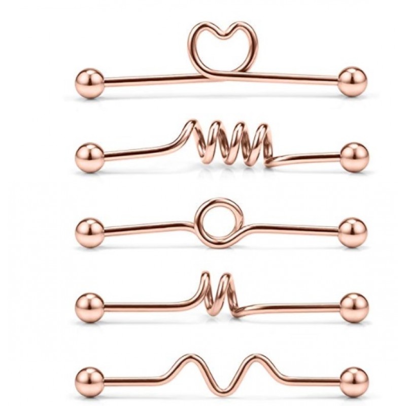 5st Stainless Steel Industrial Barbell All Rose Gold