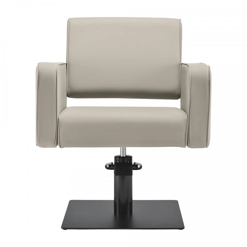 kappersstoel grijsbeige met zwarte voet