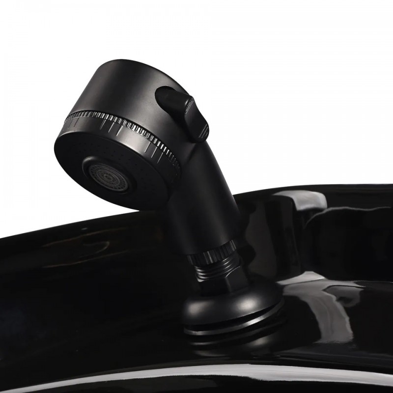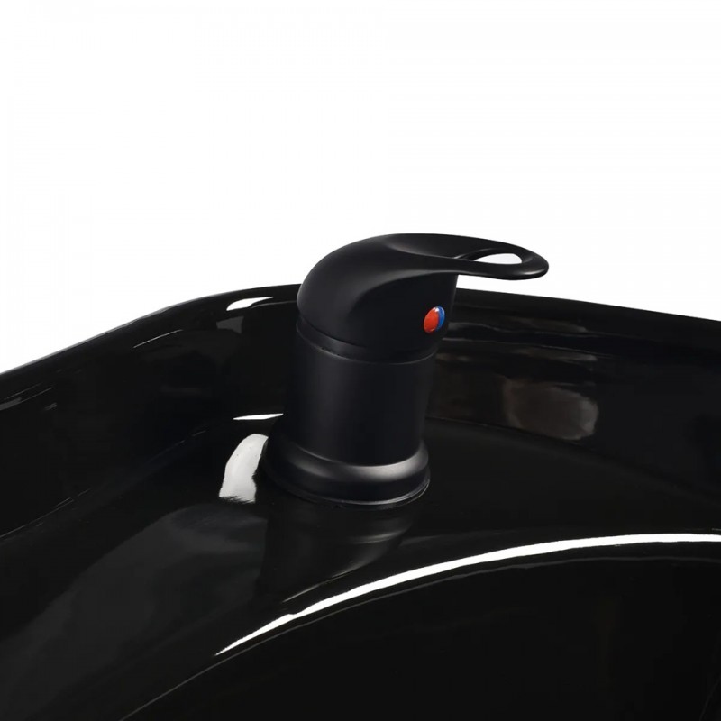 De juiste diepte van de zwarte keramische spoelbak voorkomt overmatig spetteren van water of gebruikte producten tijdens behandelingen. Dit zorgt voor comfortabele en efficiënte uitvoering van een breed scala aan behandelingen . De hoek van de spoelbak is verstelbaar, waardoor deze gemakkelijk aan te passen is aan individuele behoeften . De hoogwaardige materialen maken de spoelbak duurzaam, bestand tegen verkleuring en krassen, en zeer gemakkelijk schoon te maken . De perfect gevormde rand en de schuine rugleuning bieden ondersteuning en comfort tijdens het wassen van het haar, en dankzij de comfortabele zwarte kunststof afdekking voelen klanten geen ongemak van het koele keramische oppervlak.